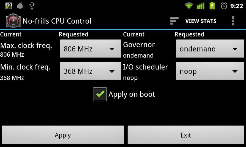 O Controle de CPU simples é uma ferramenta que você pode usar em seu dispositivo enraizado [1] para definir rapidamente as frequências de CPU e o governador a serem usados.